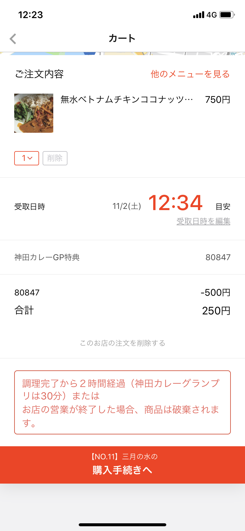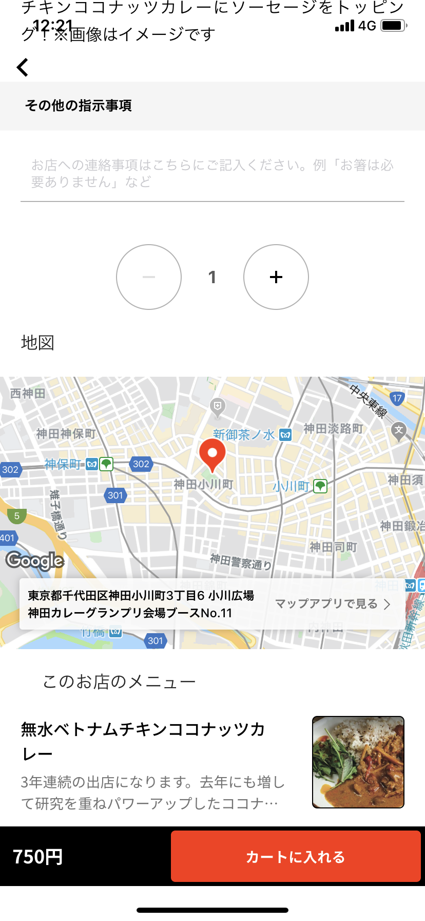 説明読んでなくて、お店のカレー作っている人に「スマホで注文したんですけど」ってスマホ画面見せたら、「ジャージ着てる人が担当です」と言われてしまいました。