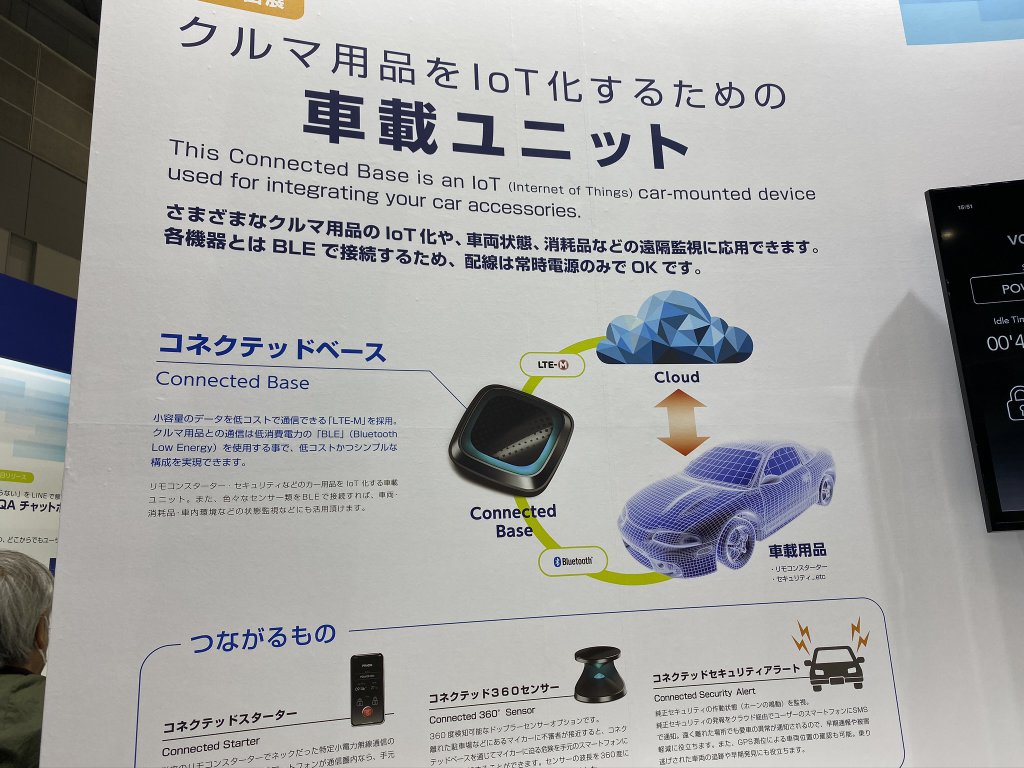 車用品のIoT化によって車両状態や消耗品などの遠隔監視を行う車載ユニットが展示されていました。