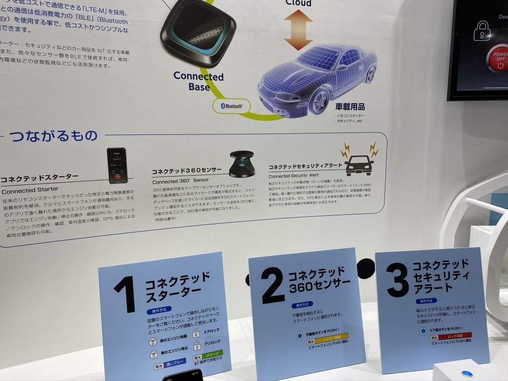 ブースではコネクテッドスターター・コネクテッド360センサー・コネクテッドセキュリティアラートが展示されていました。