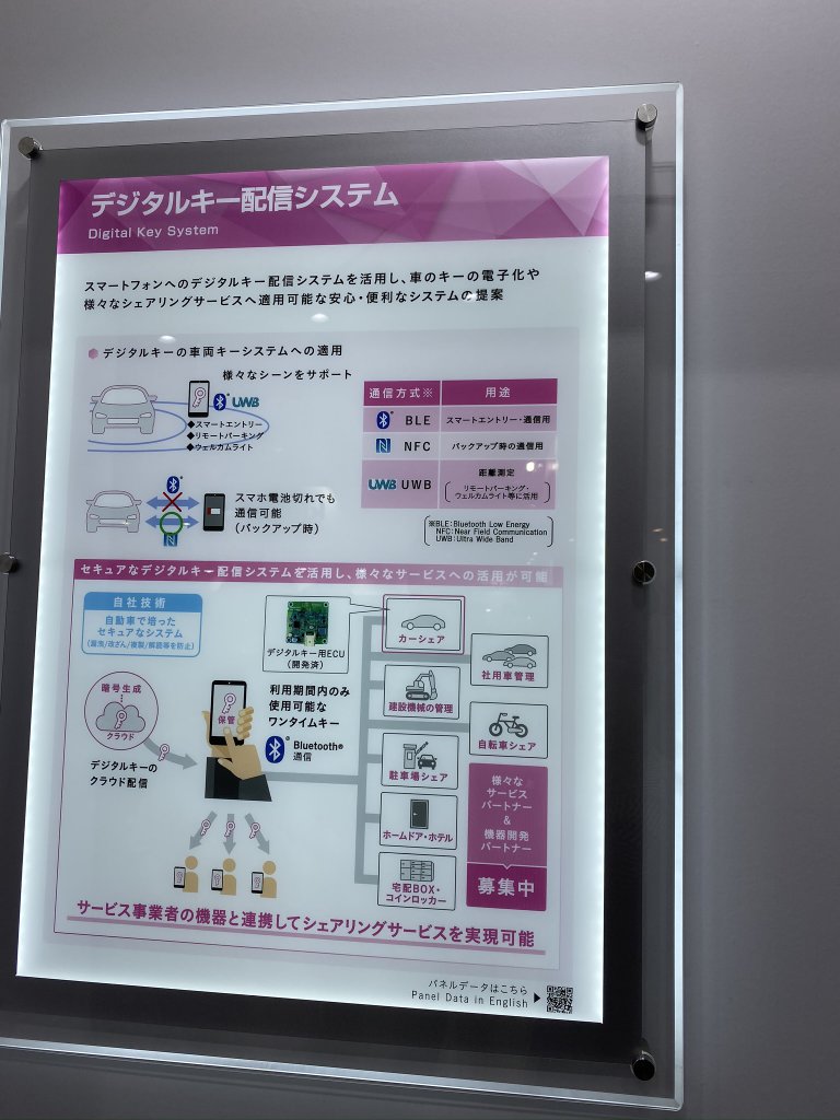 車のカギを電子化&スマートフォンで配信することによって、様々なシェアリングサービスで物理キーのやり取りなしが実現できる、デジタルキー配信システムが公開されていました。