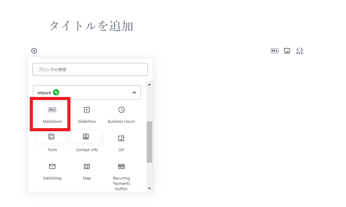 マークダウンはジェットパックの中に入っています。