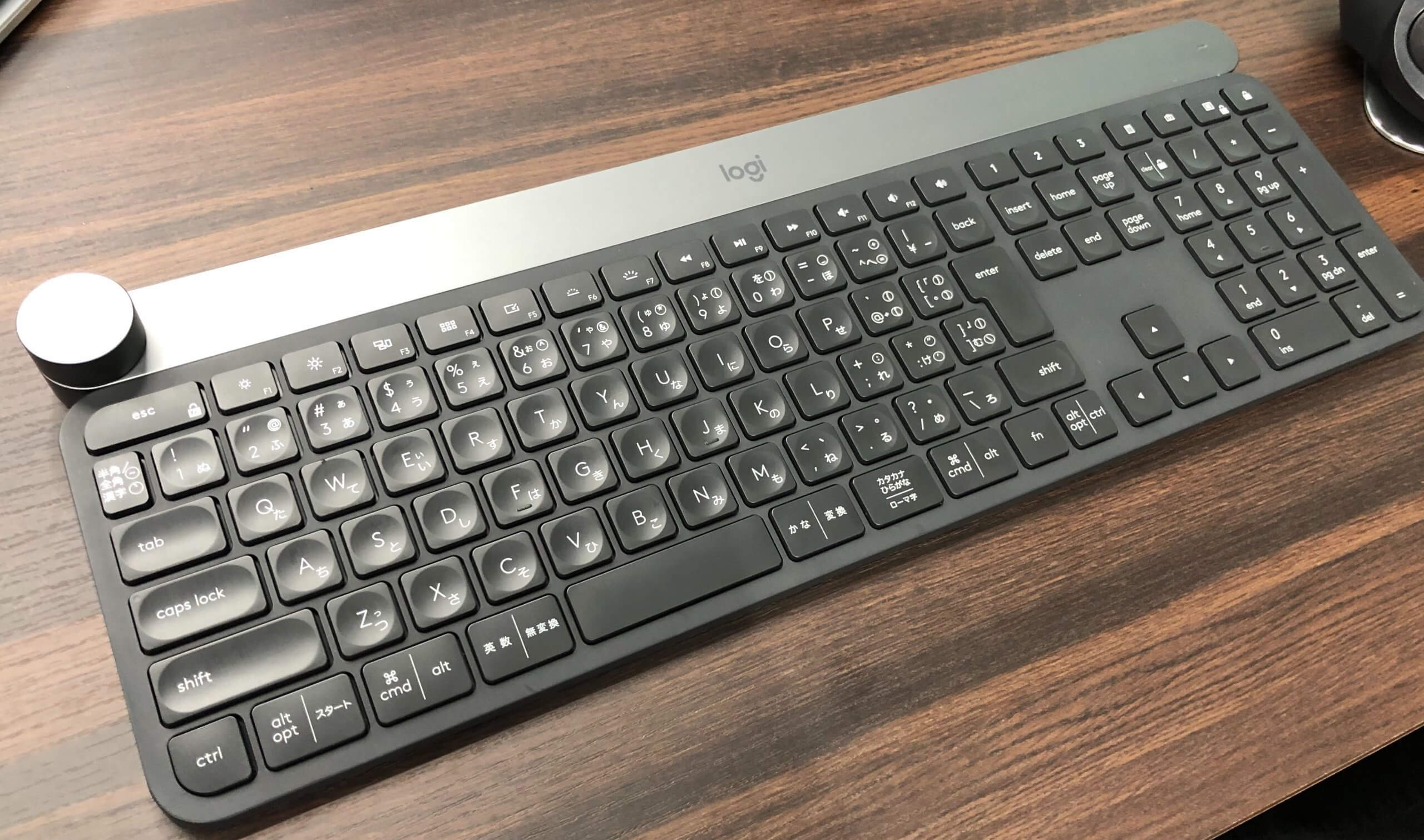 筆者コメント「多くを語らないスタイル!logicool CRAFTはパンタグラフ式のキーボードの中だと高級クラスなだけあって打ちやすいキーボードですね。特にキートップが窪んでいて、タイピングしやすいですね。ところで、新しく買ったキーボードだけど、それ壊れてない?」