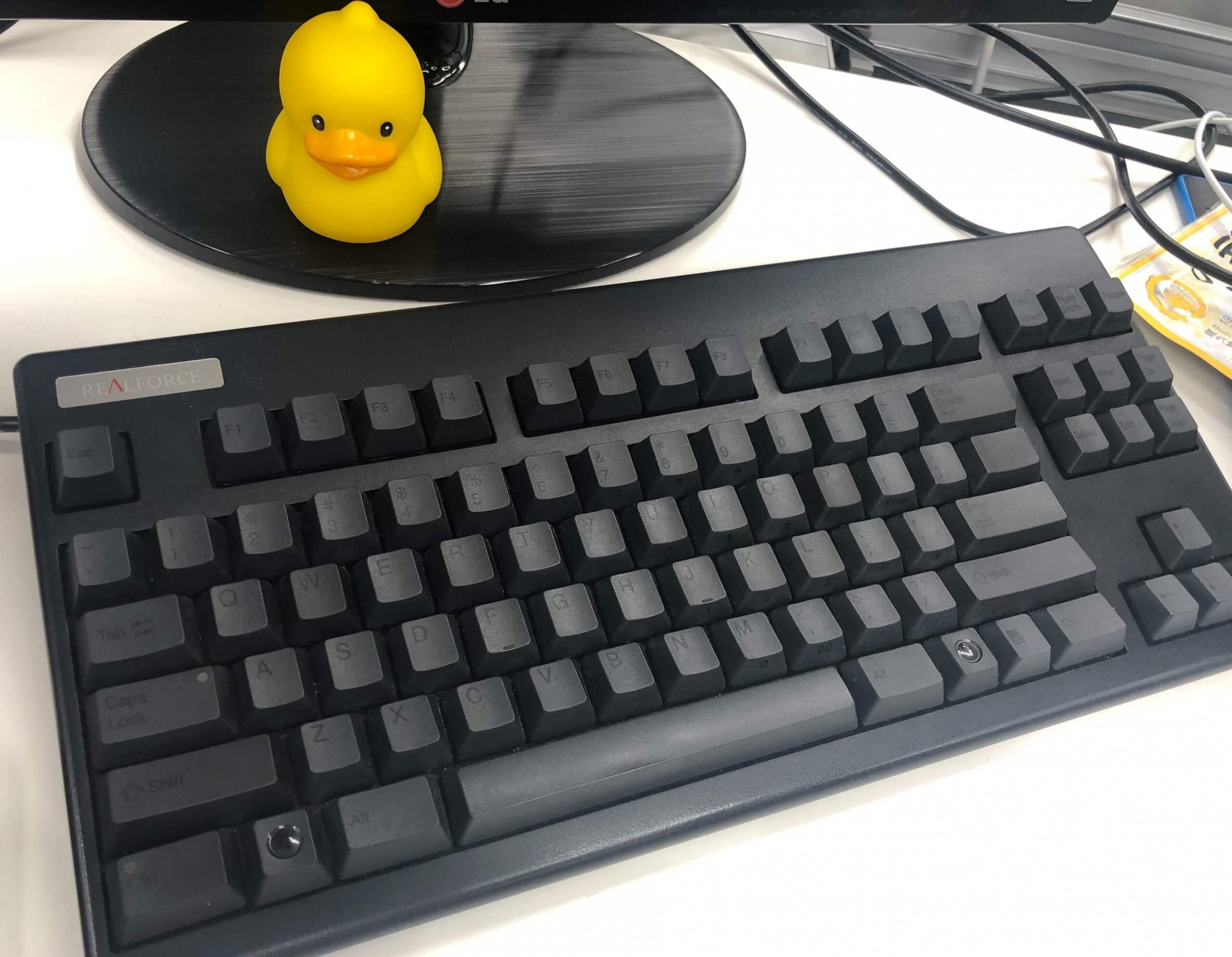 筆者コメント「ハイエンドキーボードの王道のRealforce!! キーボードのいいこと一杯教えてもらったんだけど、ラバーダッグ・デバッグで頭が一杯になりました。アヒルかわいい。」