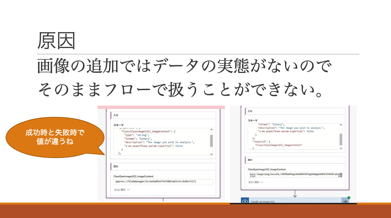 会場の猛者たちがさらっと原因を追求していて、原因は「アップロードした画像で送られるデータは実体でないため」でした。