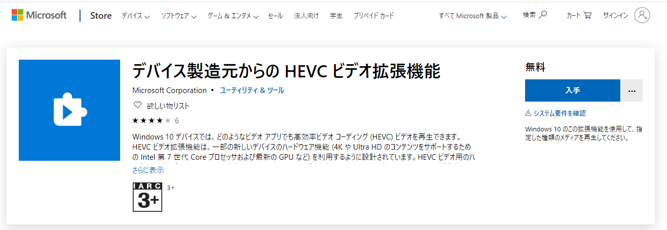 Windows標準の映画 & テレビが立ち上がりコーデックを買えとのこと。