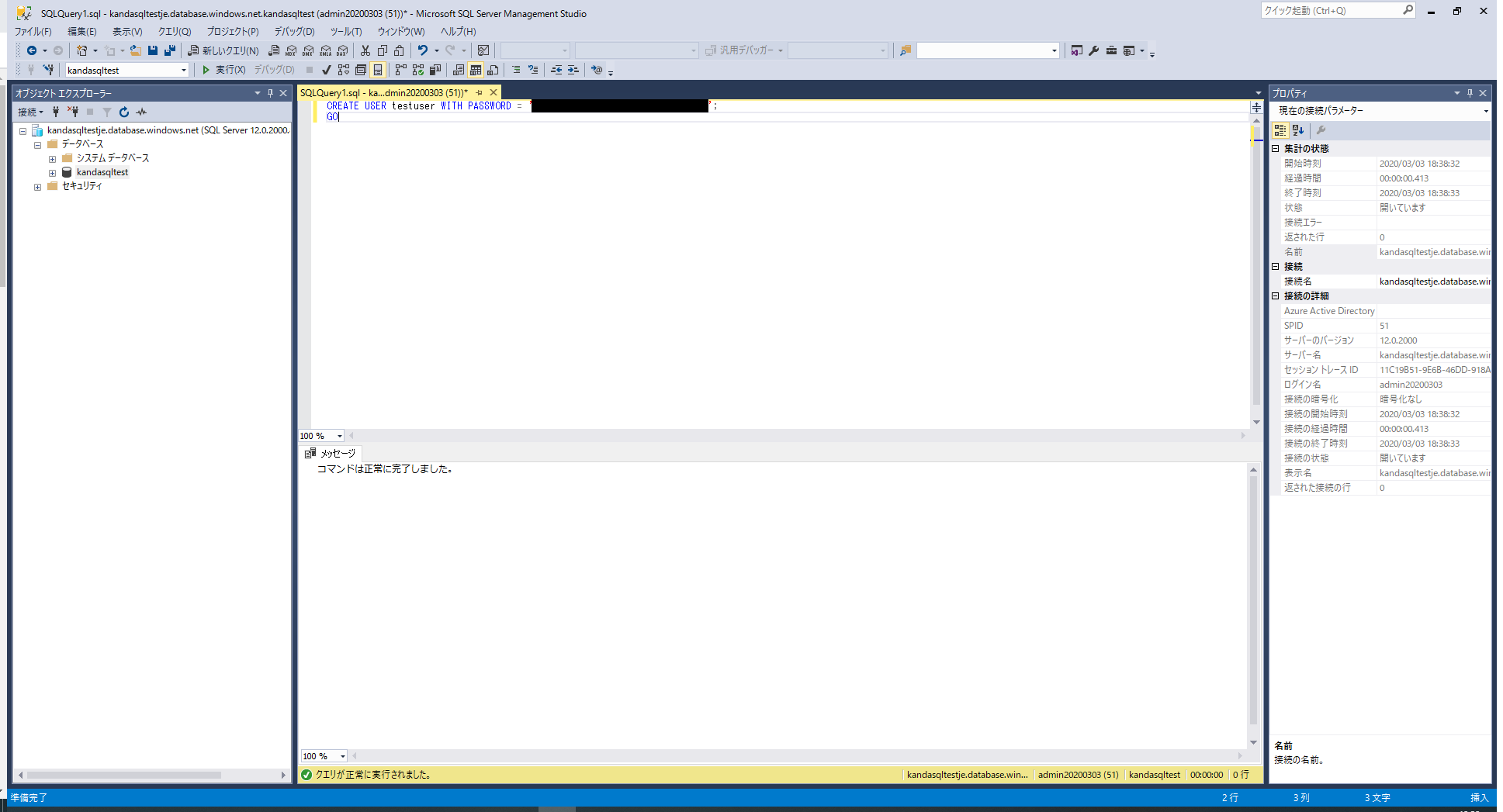 実際はユーザへの権限の付与も行いますが、今回は作成のみといたします。