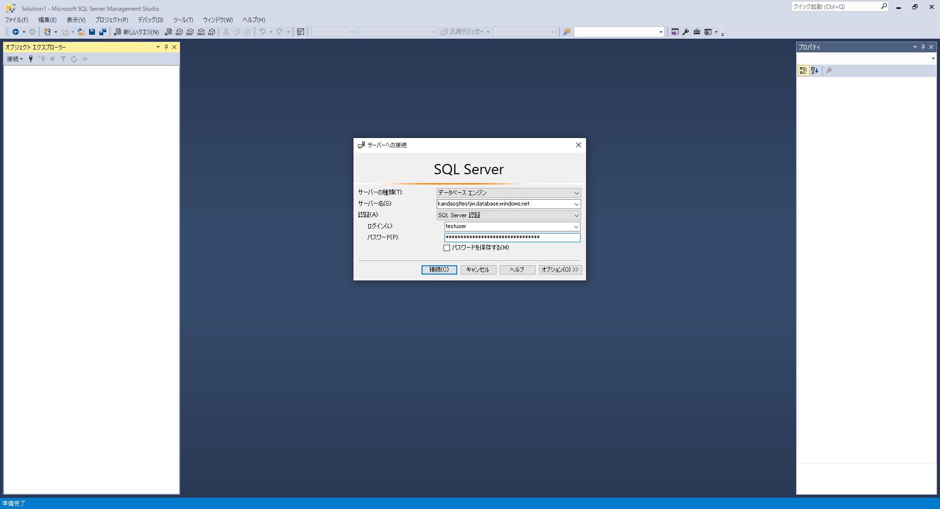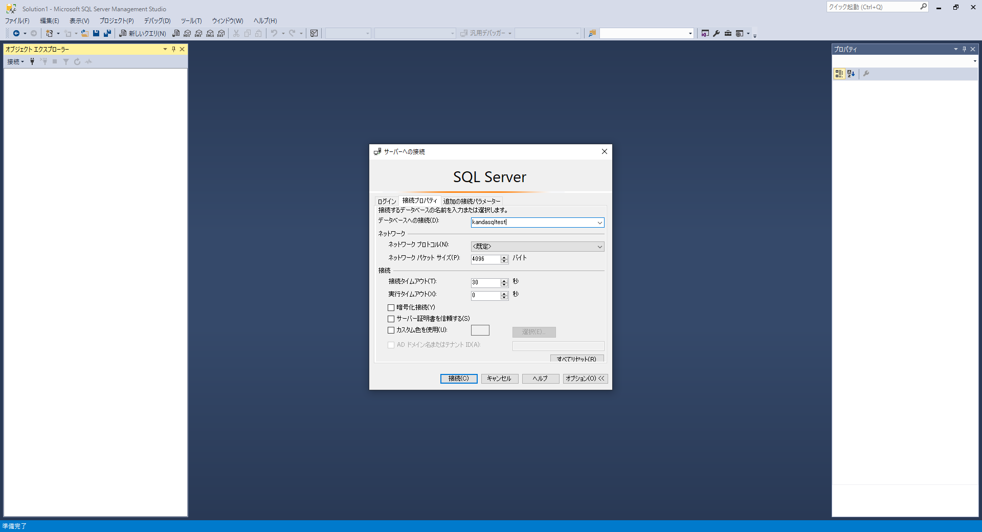 ※オプション > 接続プロパティ > データベースへの接続 より指定