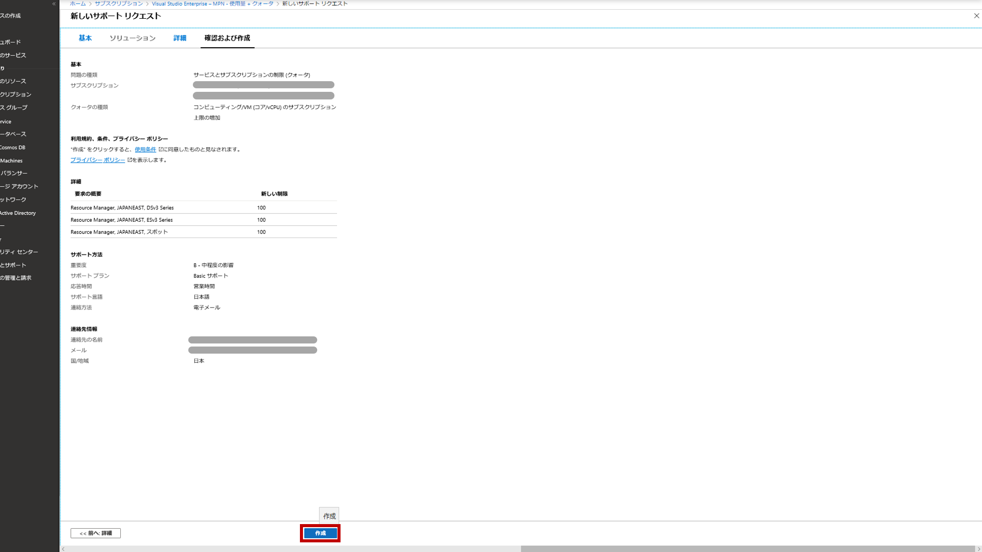 - 入力内容に間違いがないことを確認し、[作成] を選択します。