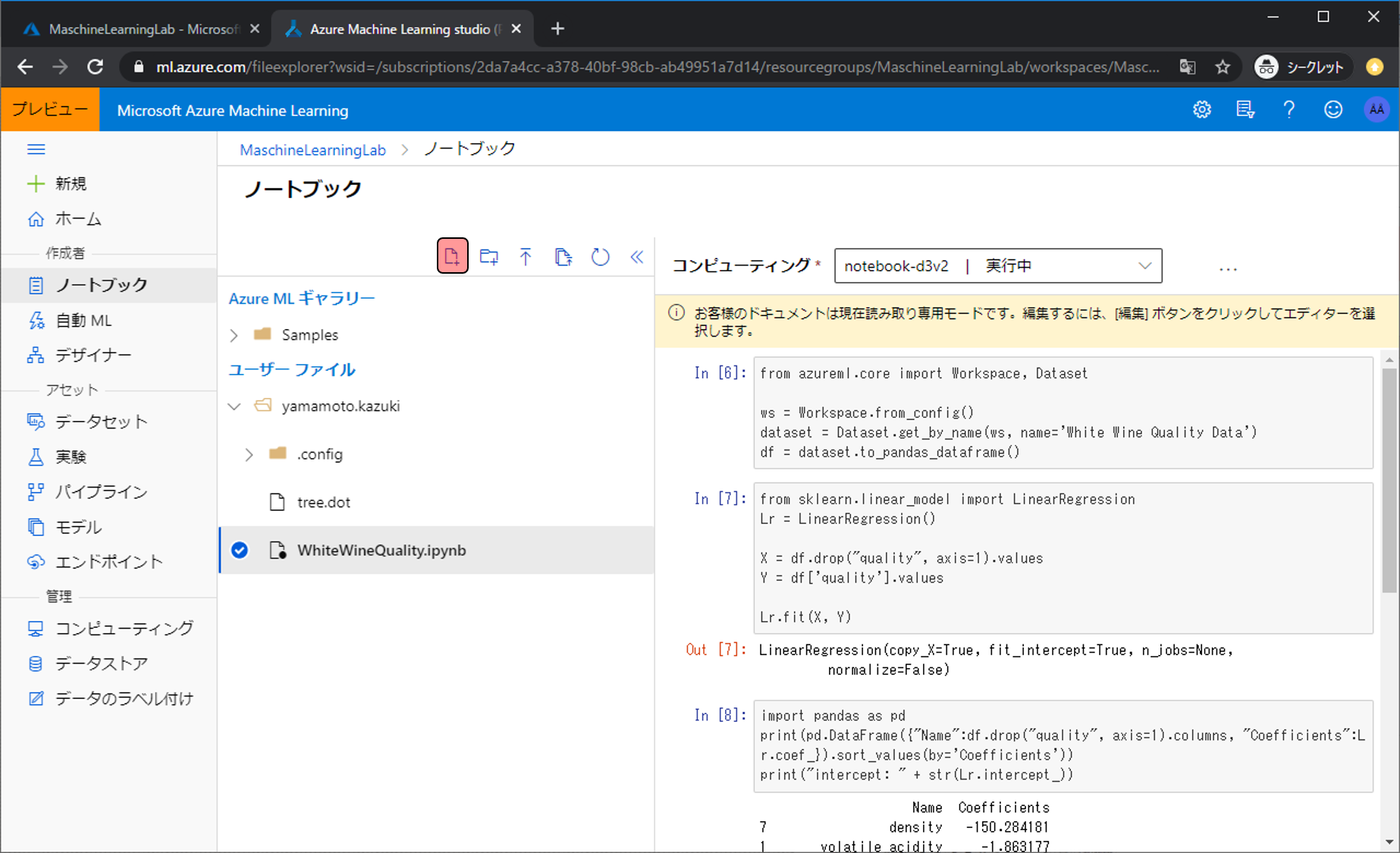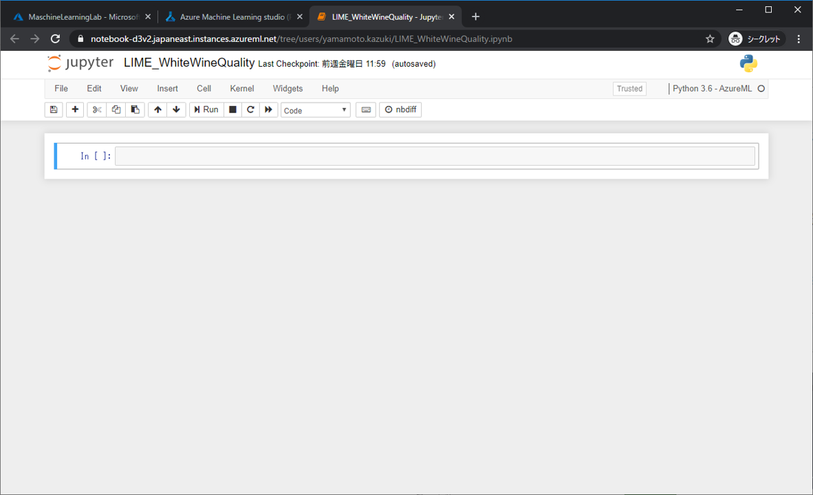 Jupyterの画面に移動しました。 引き続き、コードを書いていきます。