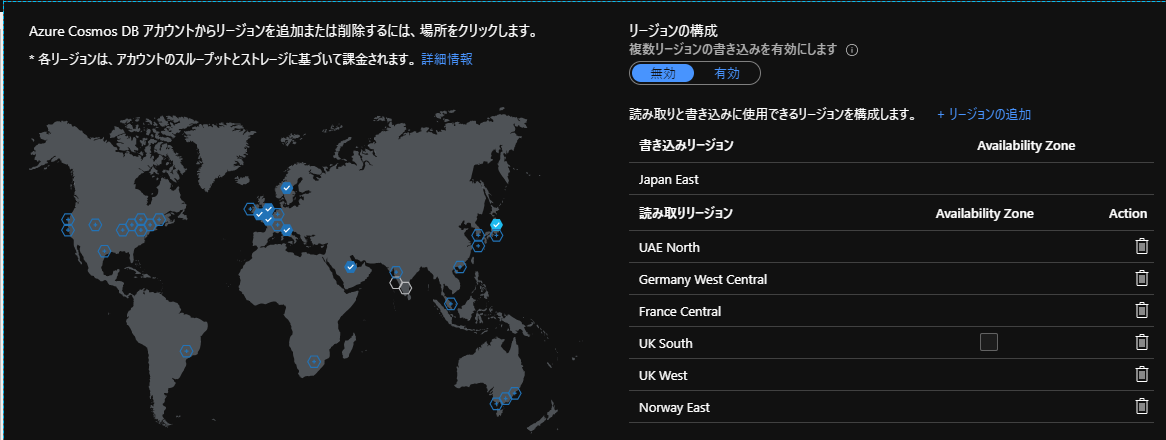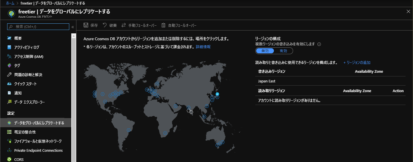 設定の中に データをグローバルにレプリケートする という項目がありここから全世界へデータの冗長化構成を行えるようになっています。