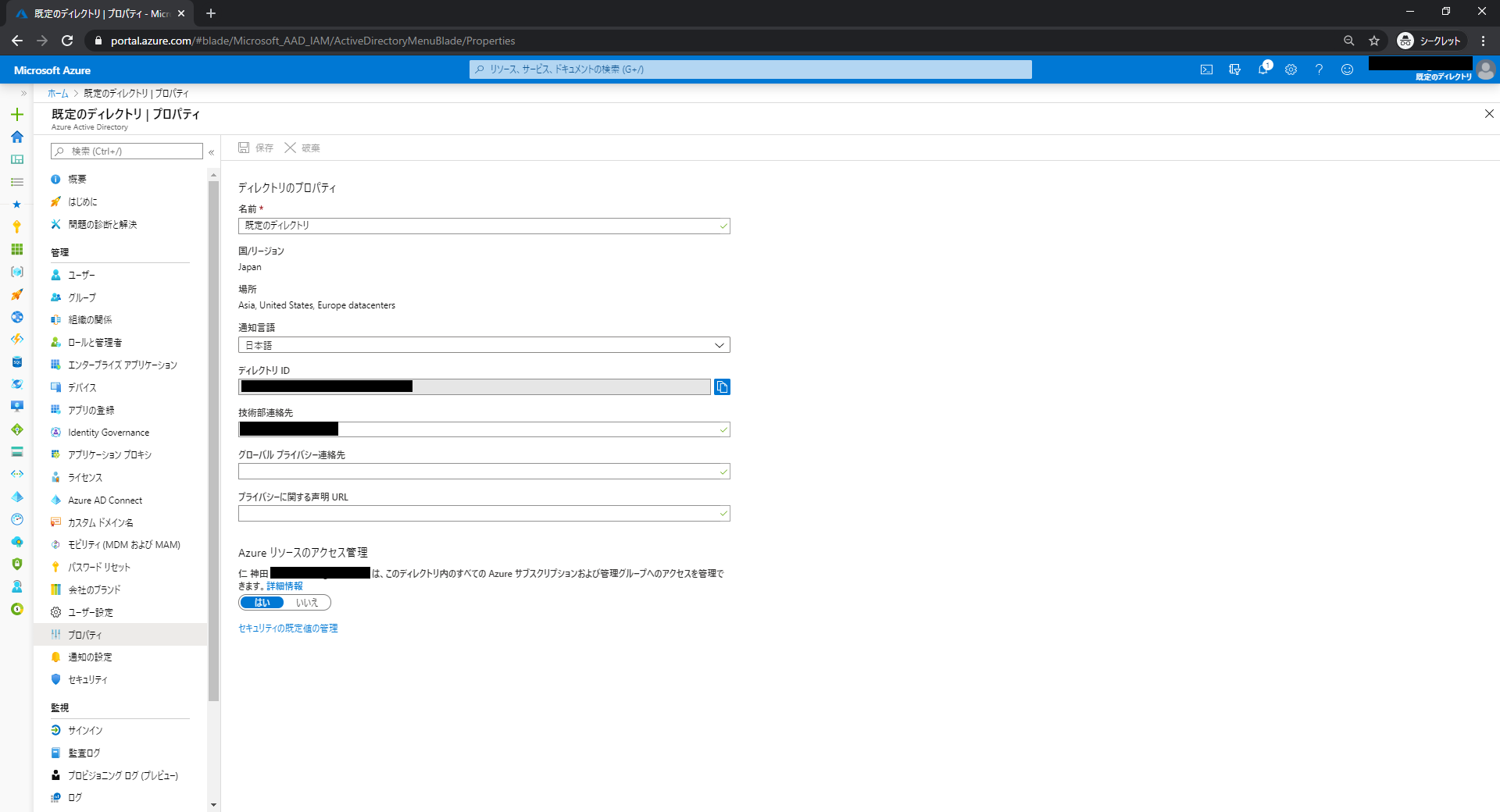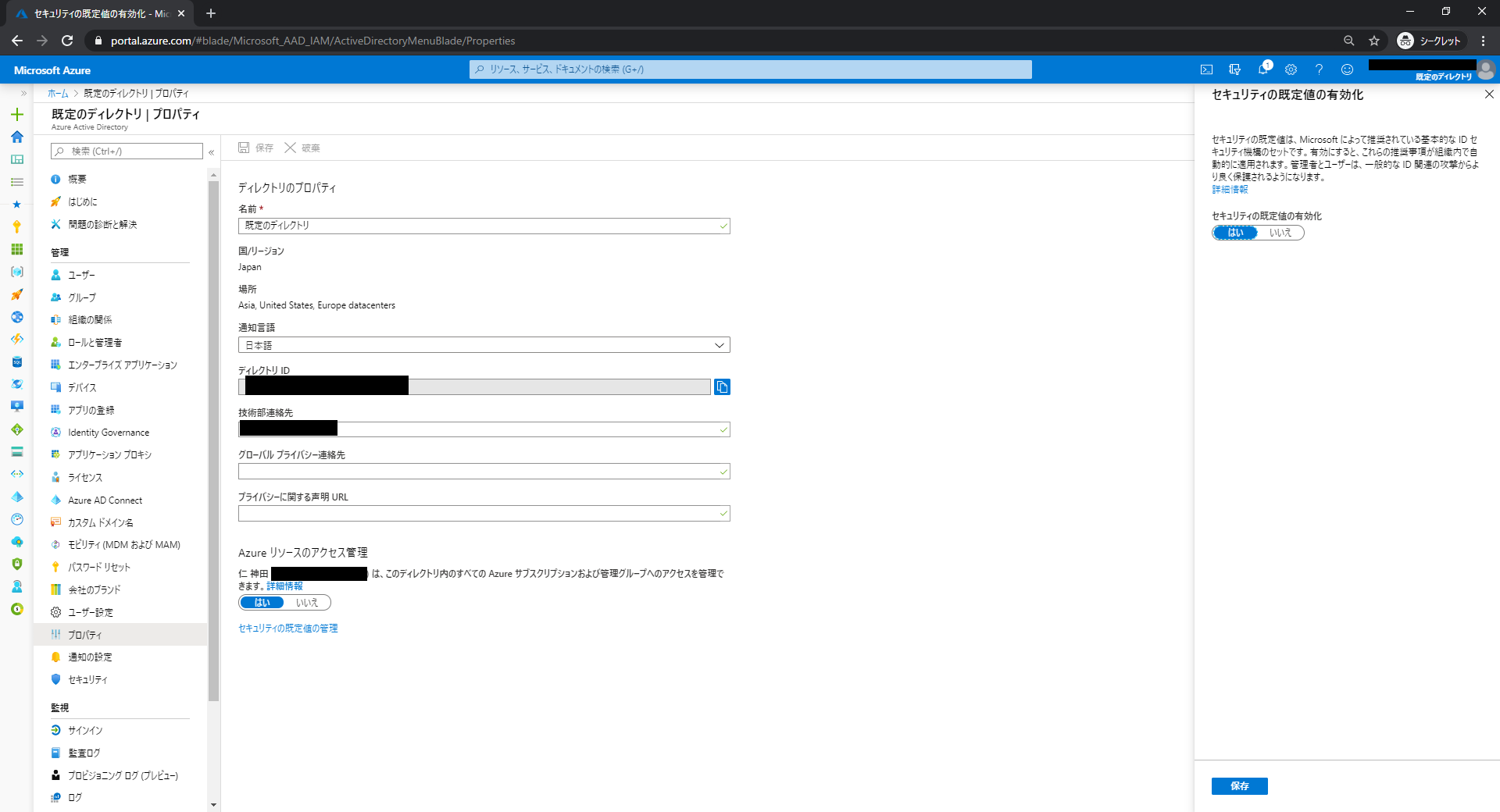 2. 「セキュリティ既定値」の有効化
