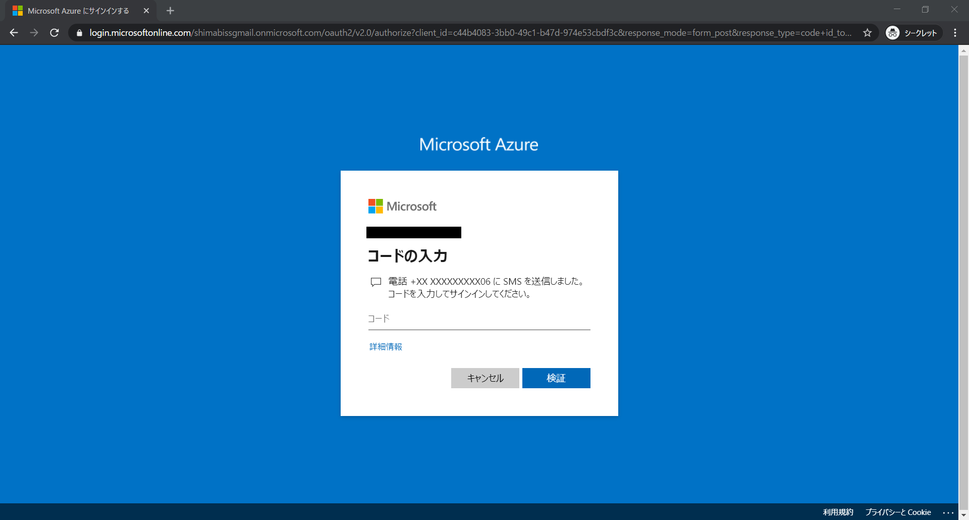 SMSが送信され、認証コードの入力を求められます。