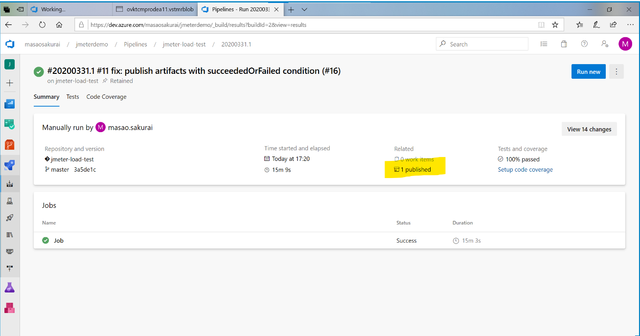 --yml-path pipelines/azure-pipelines.docker.yml実行結果をブラウザで確認してみましょう。