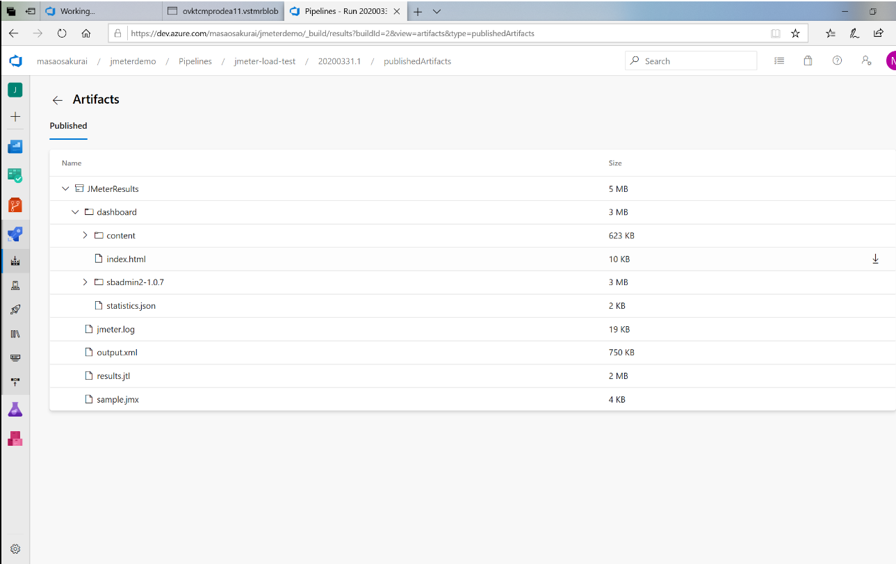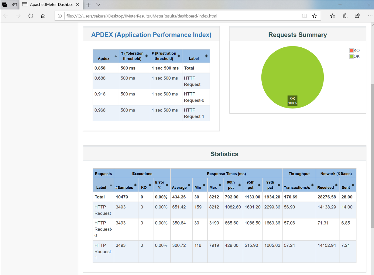一括ダウンロードすると、JMeterのダッシュボードでより詳細のレポートが確認できる