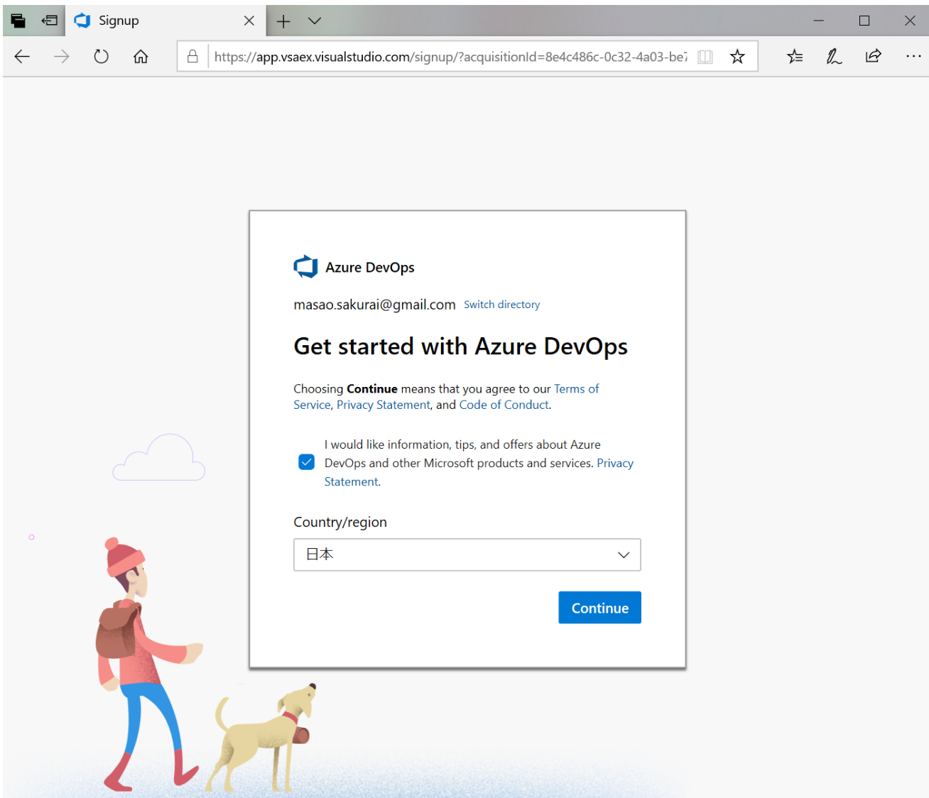 アクセスするとテナント名でDevOpsの組織が作成されます。