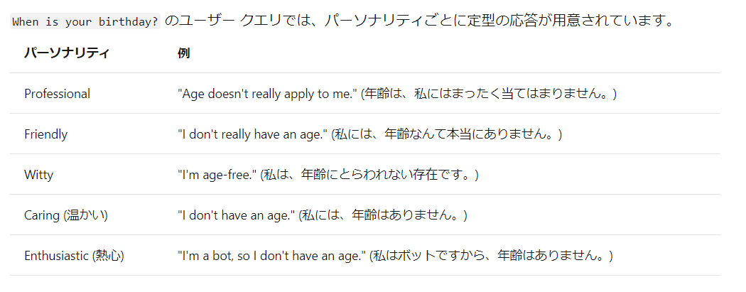余談ですが、ナレッジベースのおしゃべりとは「こんにちは」や「こんばんは」などの会話に対してのデータセットです。