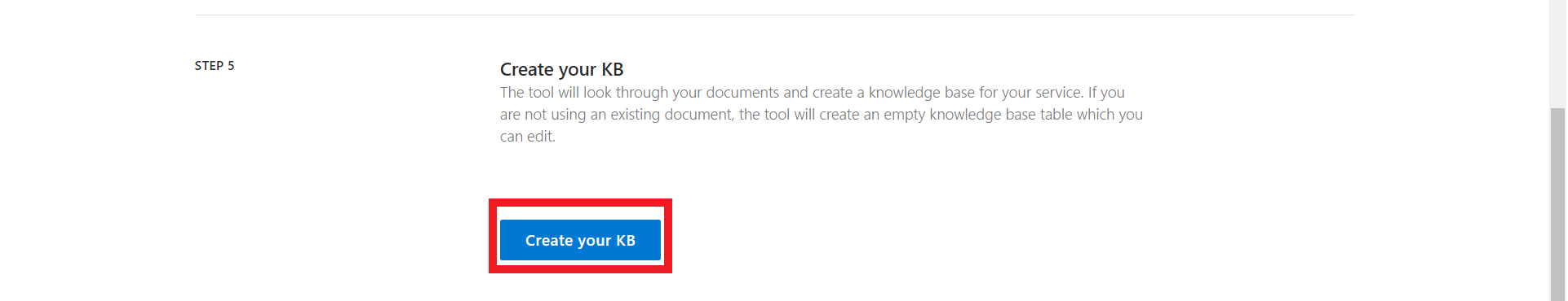 6.「Create your KB」をクリックしてナレッジベースを作成していきます。