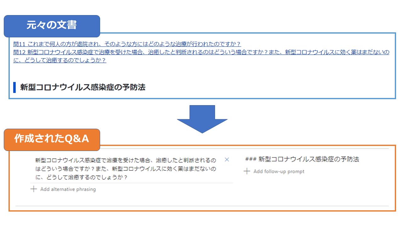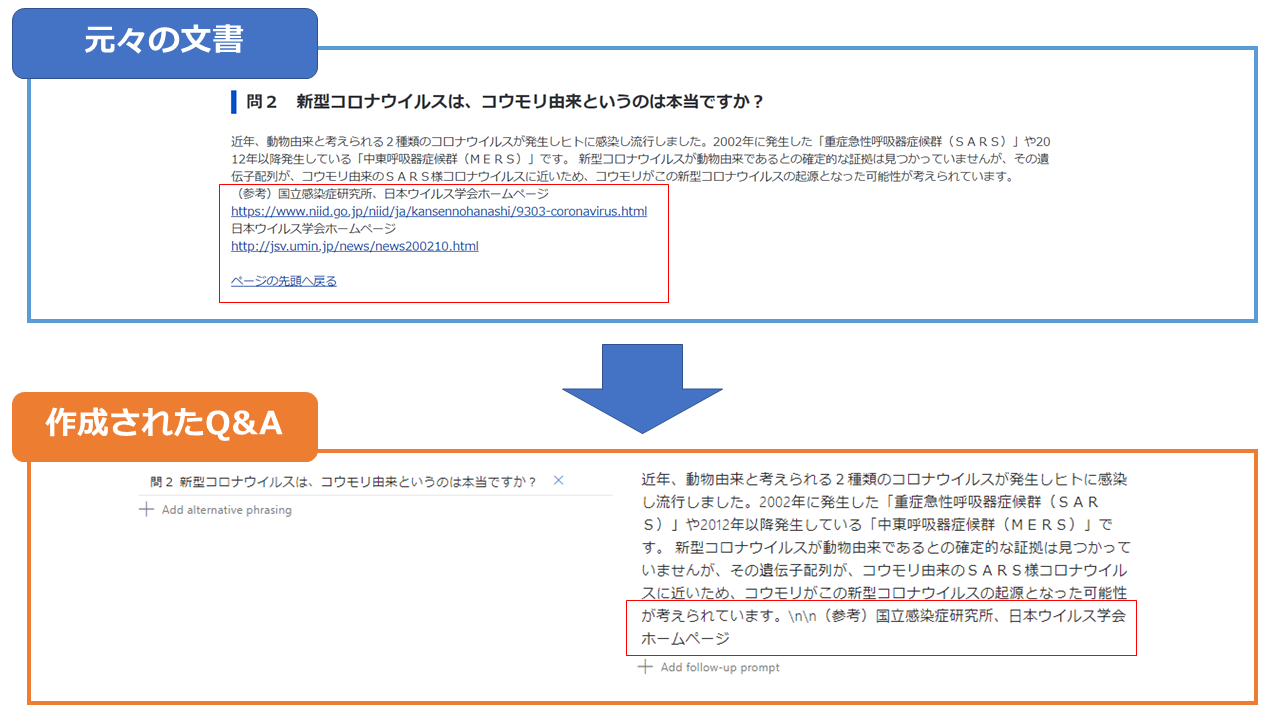 以下のように元々の文書で質問のリンクだった部分をQ&Aとして抽出していました。
