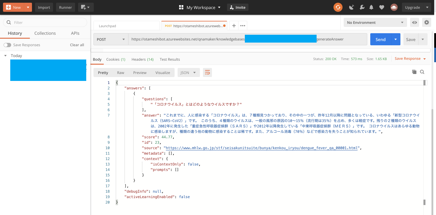 このページを参考にして、実際に回答が取得できるかをPostmanで試してみましょう。