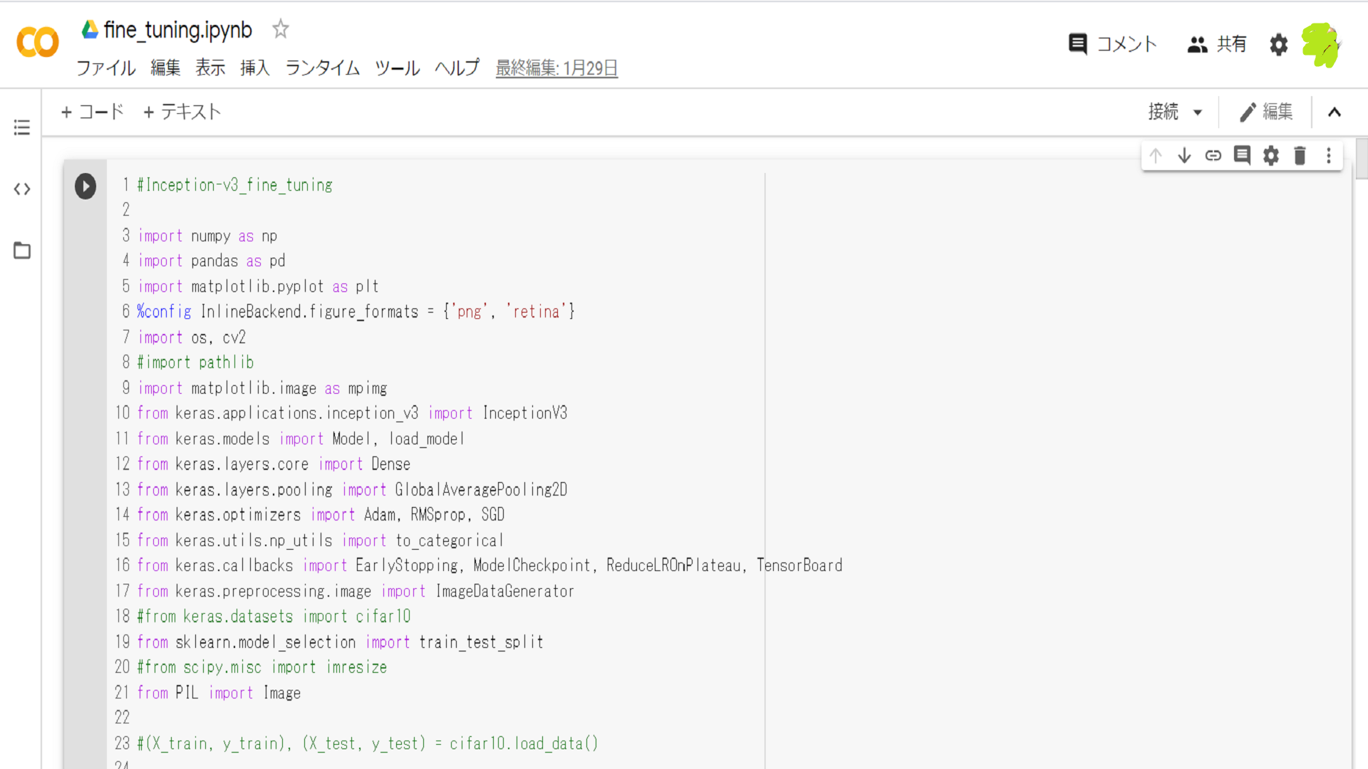 それはGoogle Colaboratoryというサービスで、自分が書いたプログラムをクラウド上のGPU環境で実行できるというものでした。(Google colabについてのスペックについて今回は割愛。いつかそこらへんのブログも書きたいなと思っています。)