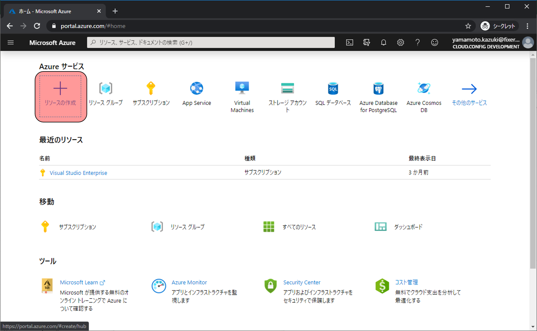 - リソースグループ: 任意の文字列 → これから作成していくリソース群を格納する場所の名前