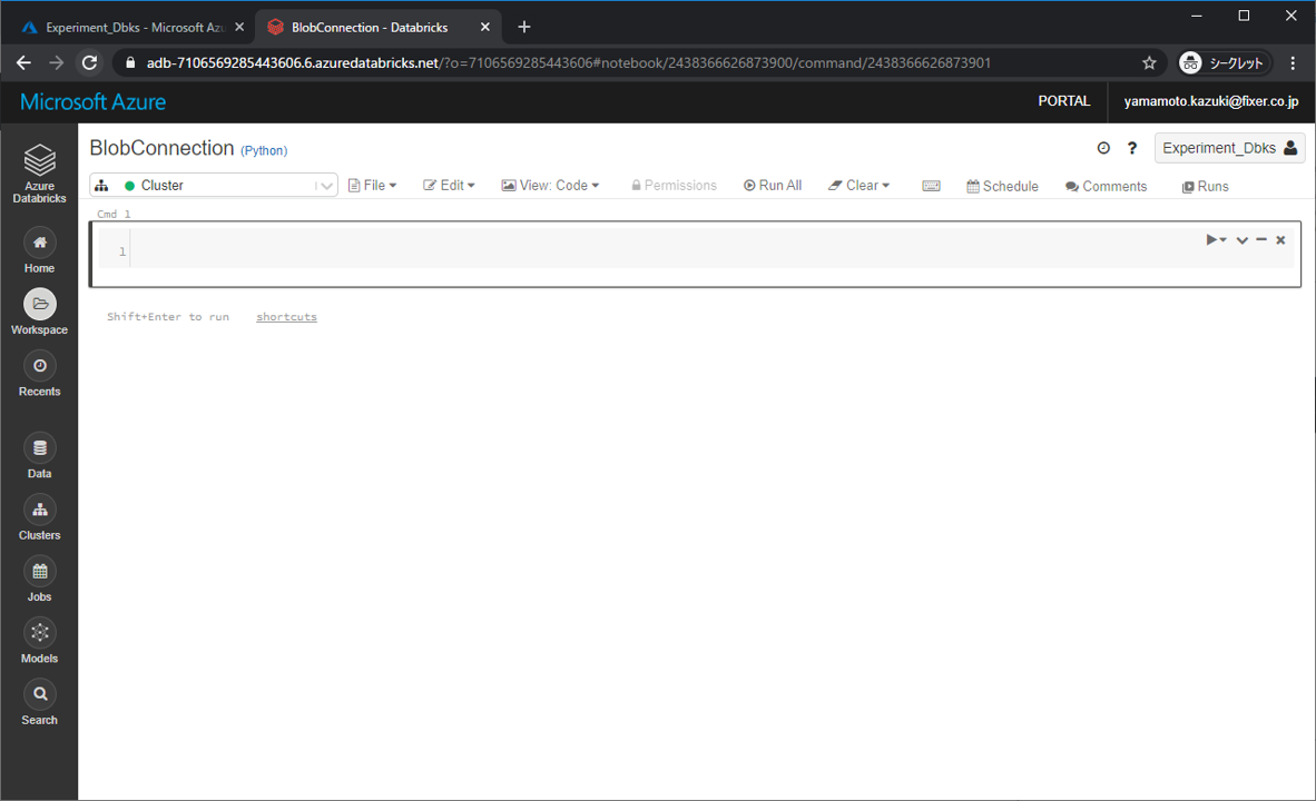 Pythonをよく使うひつにとっては見慣れたNotebookのような画面が表示されます。ここにPythonコードを書き、Blobの情報をクエリで取得します。
