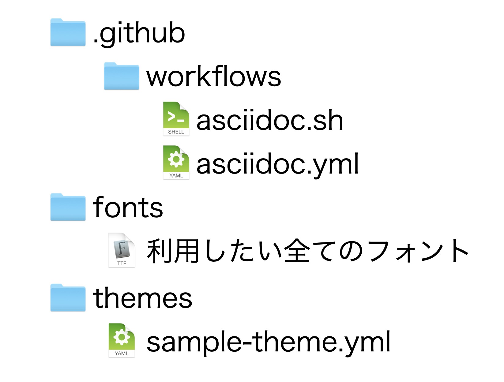 shellcommand: "./.github/workflows/asciidoc.sh"日本語フォントの準備と設定をしよう