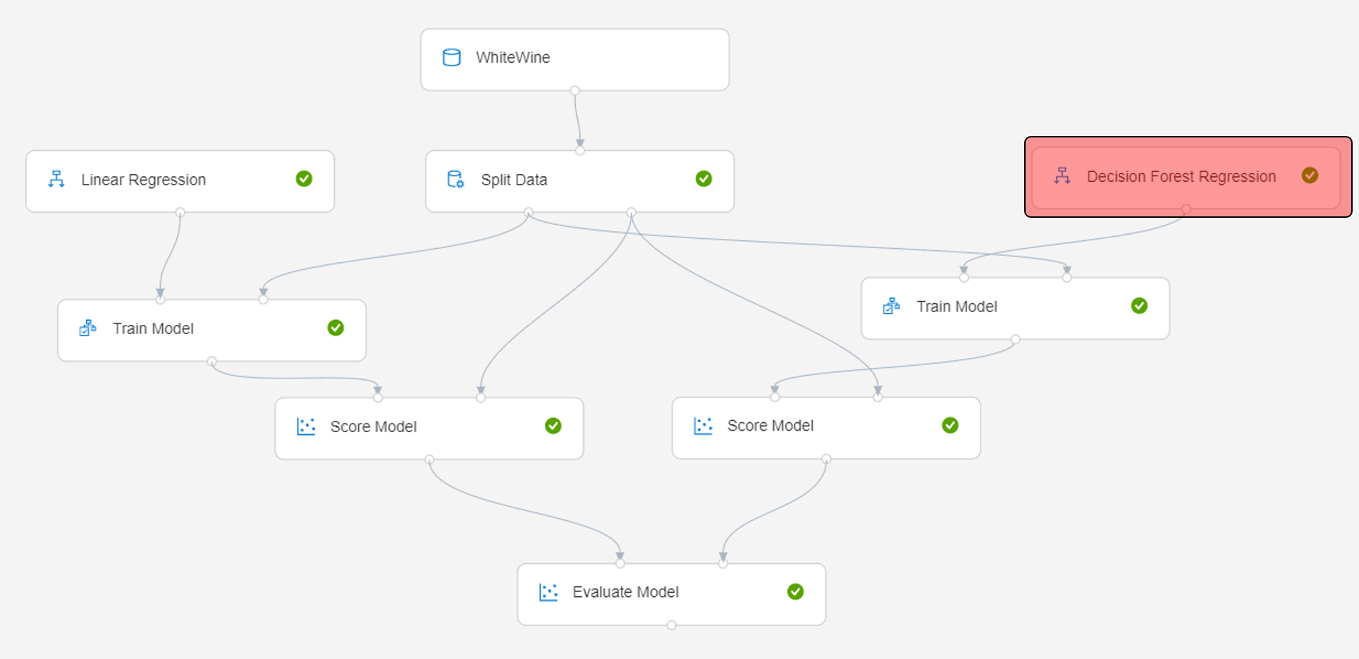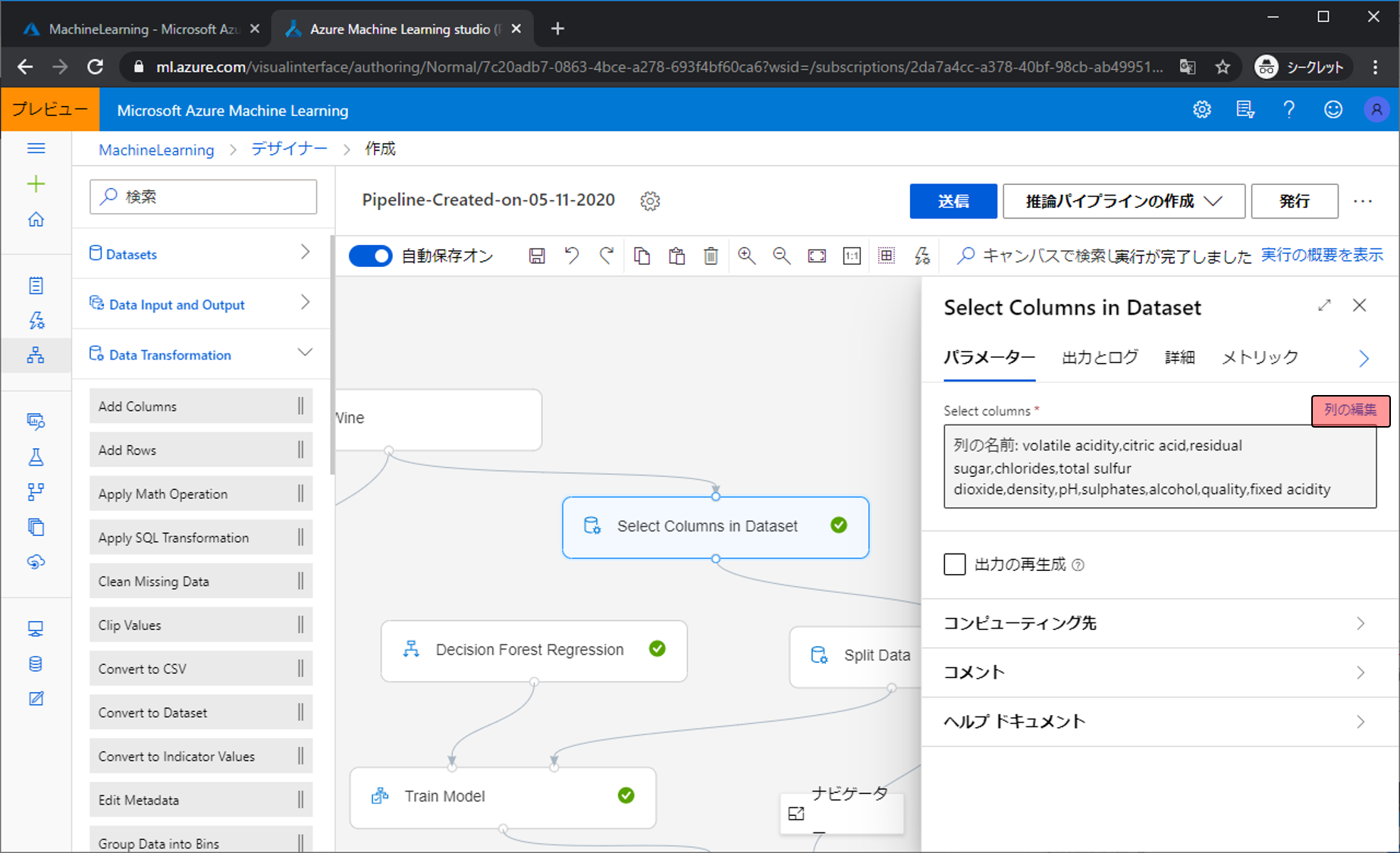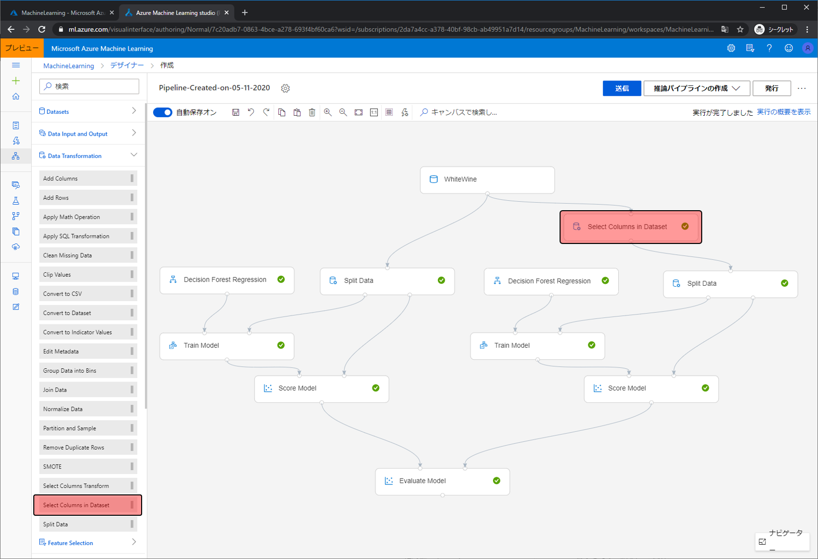 同じデータを使ってモデルを作成する部分をもう一つ作りました。利用しているアルゴリズムはDecision Forest Regressionです。