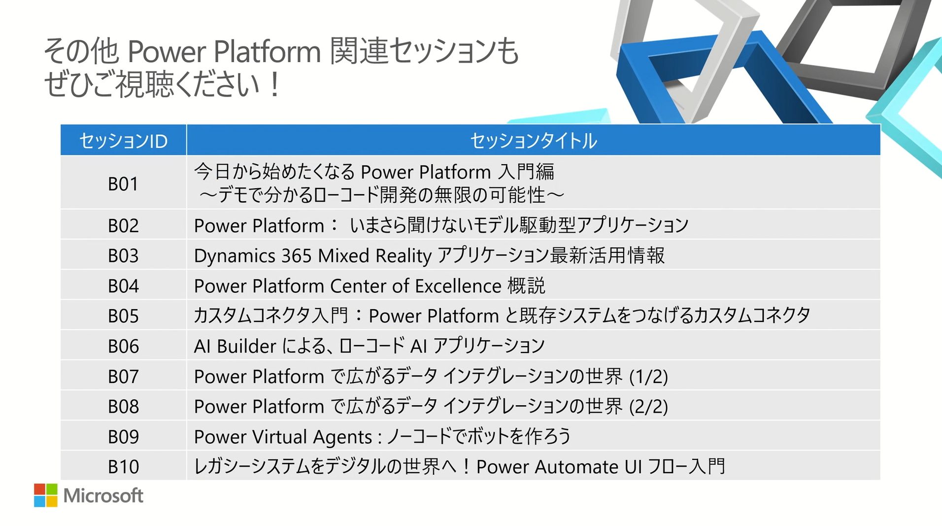 PowerPlatform関連セッションは、全部で10個あるそうですよ!これは目が離せませんね!!