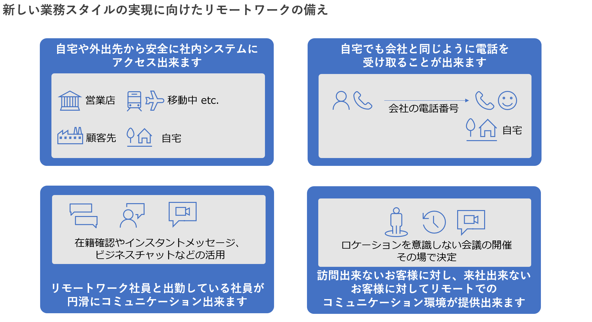 - 訪問できないお客様、来社できないお客様に対してリモートでコミュニケーションできるということ