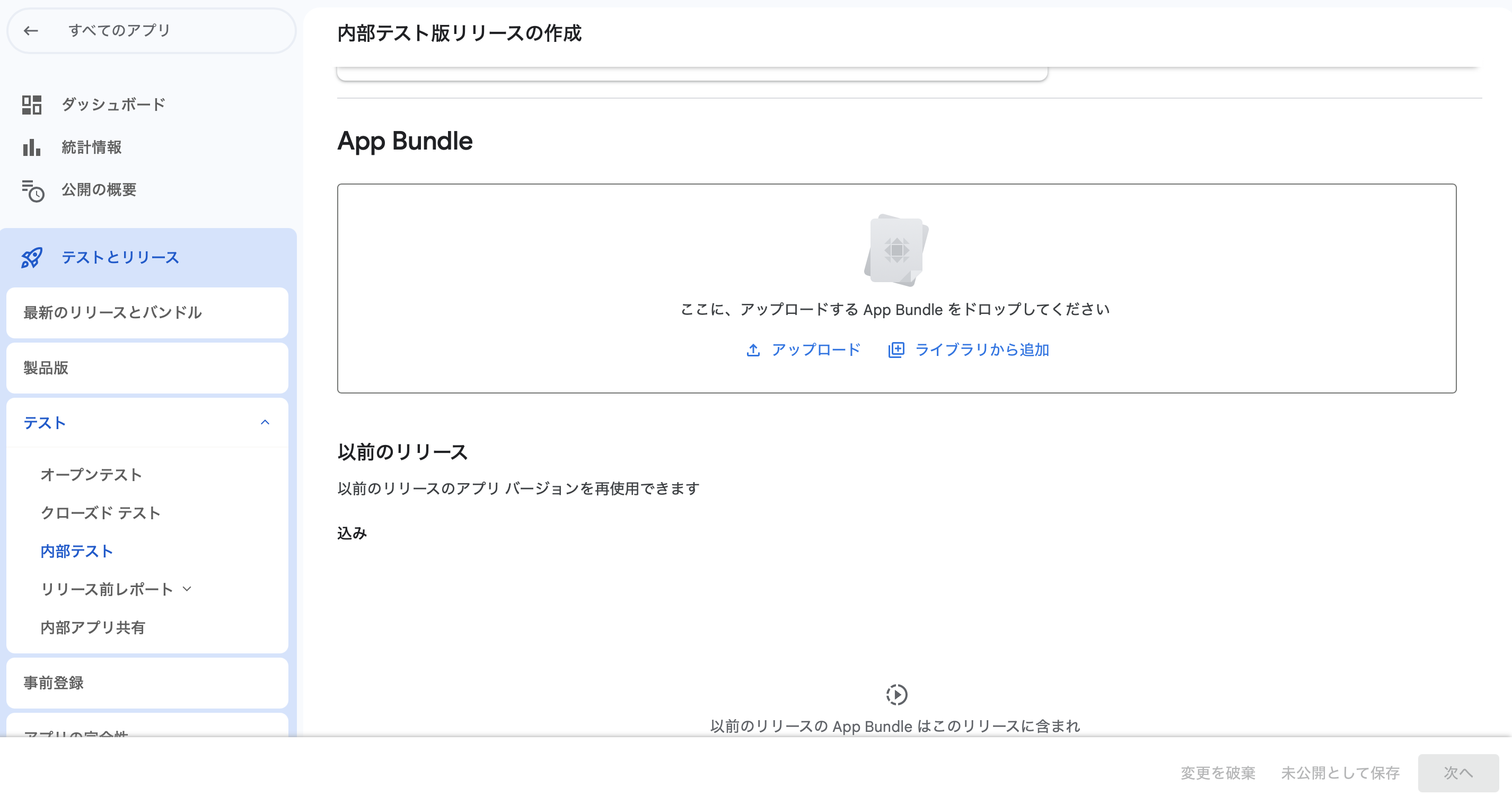 内部テスト版リリースの作成